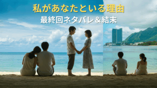 恋愛 私があなたといる理由 最終回ネタバレ&結末|別れるカップルとラストの意味を解説 ドラマ『私があなたといる理由』最終回が放送され、ついに1組のカップルが“別れ”を選ぶ結末が描かれました。本記事では最終回のあらすじ・結末の意味・別れたカップル・キャストコメント・SNS反応・配信情報をまとめます。「誰が別れたの?」「ラストの... 2025.08.22 恋愛